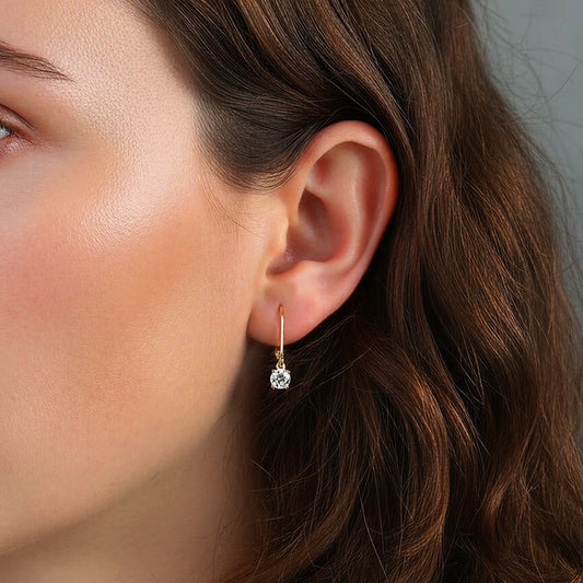 Kemstone Prong Set Moissanite Drop Earrings – 925 Sterling Silver, 5mm / 6.5mm, Gold / Silver MOE13