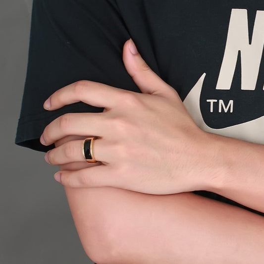 Kemstone Stainless Steel Ring for Men & Women – Black Agate Inlay RC-203