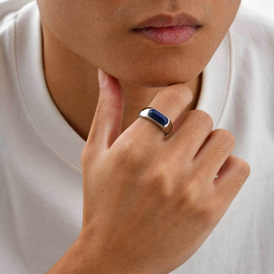 Kemstone Stainless Steel Lapis Lazuli Ring for Men – Oval RC-786