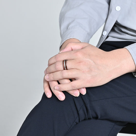 Kemstone Celtic Knot Wood Inlay Stainless Steel Ring for Men & Women K-R1026