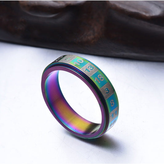 Kemstone Rotating Number Spinner Ring for Men, Stainless Steel 6mm Rainbow Black K-R122