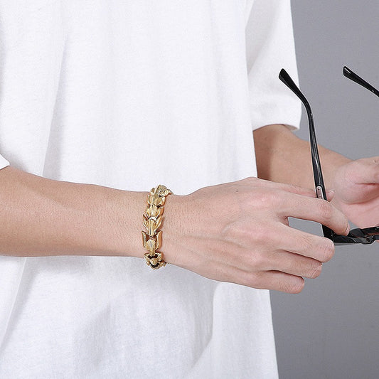 Kemstone Dragon Bone Chain Bracelet for Men – Titanium Steel Vacuum Plated 15mm Link KB150666-KJX
