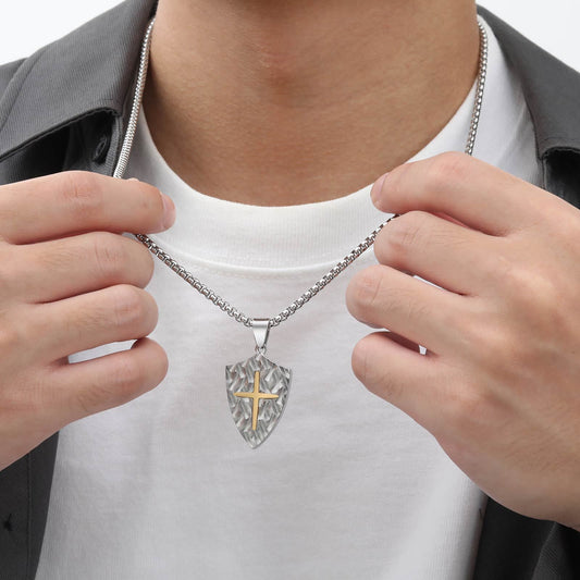 Kemstone Shield Cross Titanium Steel Pendant Necklace for Men – Brushed Relief Texture PN-2087