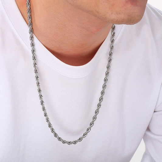 Kemstone Titanium Steel Rope Chain Bracelet & Necklace for Men – Hip Hop Twisted Link, 6 Colors KN299096-KFC