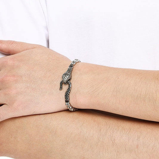 Kemstone Punk Snake Head Chain Bracelet for Men – Titanium Steel 200mm KB203290-Z