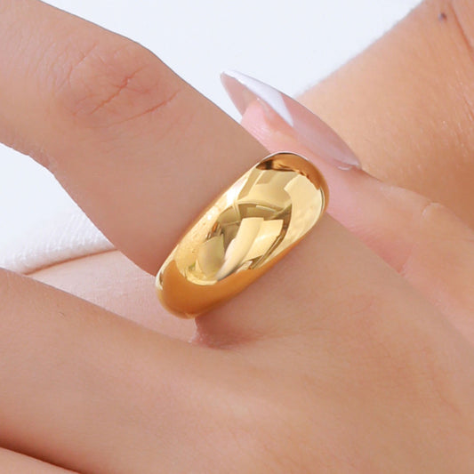 Anillo geométrico elegante de acero inoxidable dorado para mujer: joyería minimalista moderna para un look glamuroso diario RC-719