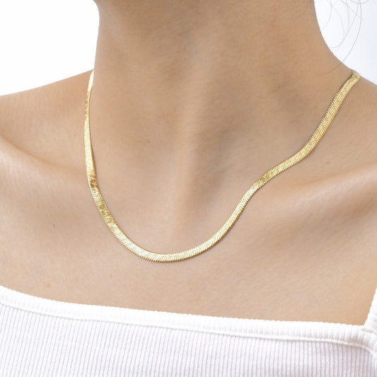 Collar de cadena de acero inoxidable con textura de cuchilla Kemstone Slash: joyería minimalista en tonos dorados para mujer NC-1636