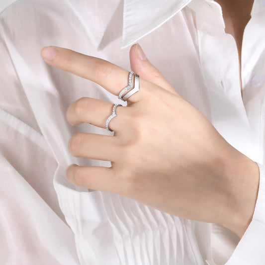 Elegante anillo cuadrado de acero y titanio con diamantes para mujer: un accesorio imprescindible para tus desplazamientos diarios K-R949