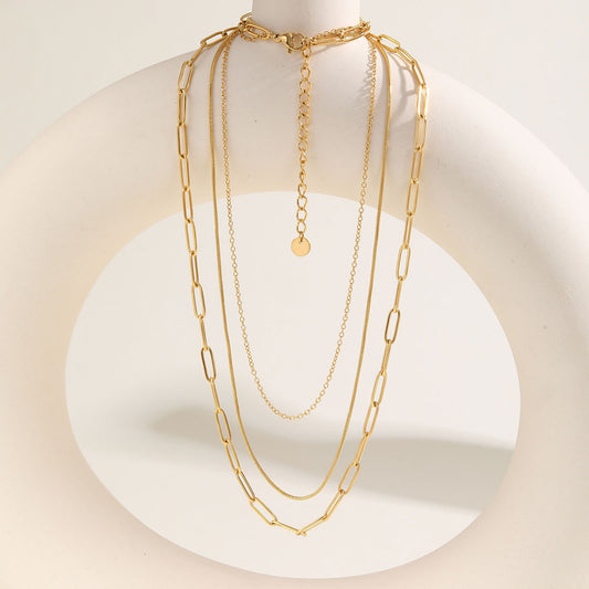 Collar de acero inoxidable Kemstone de triple capa con eslabones de cruz plana, serpiente y cuadrado - Joyería minimalista moderna para mujer NC-1353