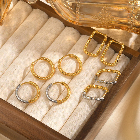 Elegantes pendientes geométricos de acero inoxidable con baño de oro bicolor para mujer EH-707