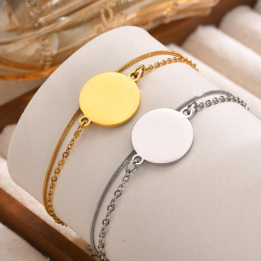 Pulsera de cadena doble de acero inoxidable con grabado personalizado para mujer | Elegante joya apilable de oro con dije personalizado BR1994