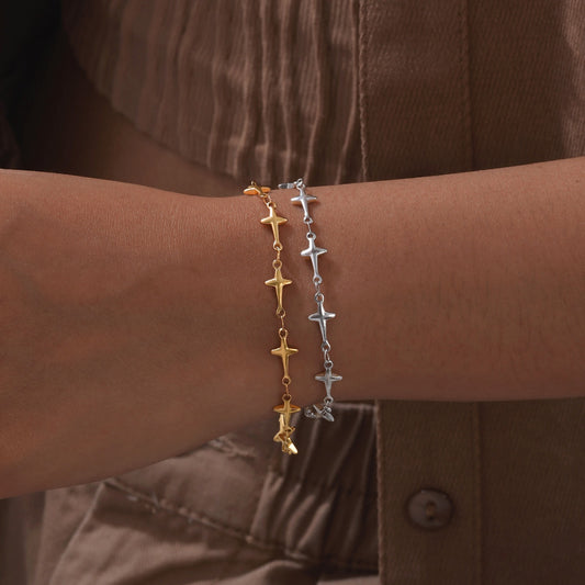 Pulsera apilable vintage de estrella de cuatro puntas: joyería celestial de acero inoxidable para un toque de elegancia cotidiana (1951)