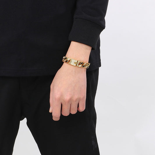 Pulsera Kemstone de eslabones cubanos de resina y cristal de 14 mm – Acero de titanio, estilo urbano para hombre KB179928