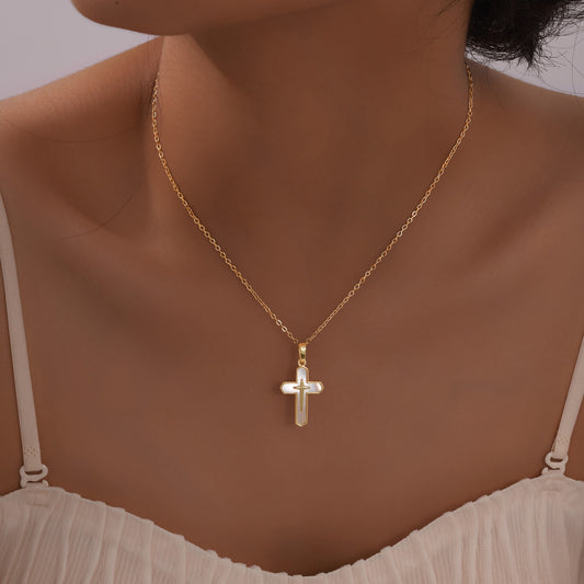 Collar con colgante de cruz de concha de cobre estilo vintage: delicada joyería boho chic para mujer PNB322