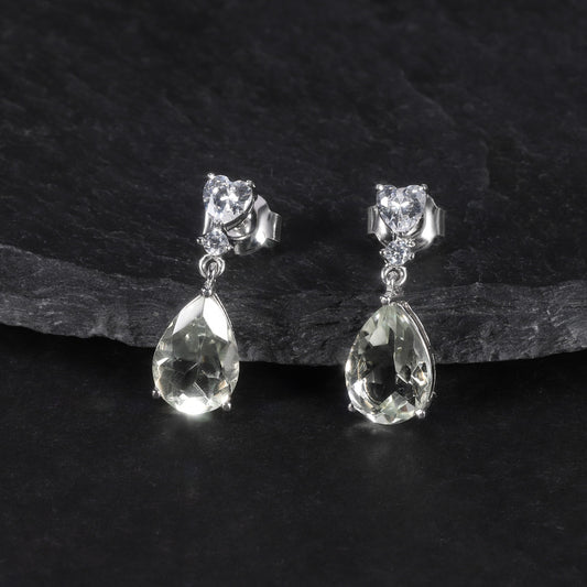 Pendientes de amatista verde natural de plata de ley con diseño original hechos a mano de Kemstone, joyería de boda