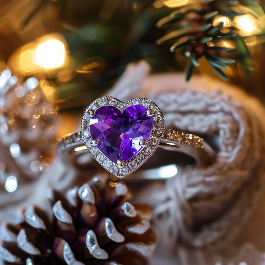 Anillo de amatista natural en plata de ley 925, diseño original artesanal de Kemstone. Anillos de amor con forma de corazón. Regalo de San Valentín (tallas 5-10).