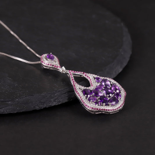 Collar de amatista natural de diseño original hecho a mano por Kemstone, colgante de plata de ley para mujer, 45 cm
