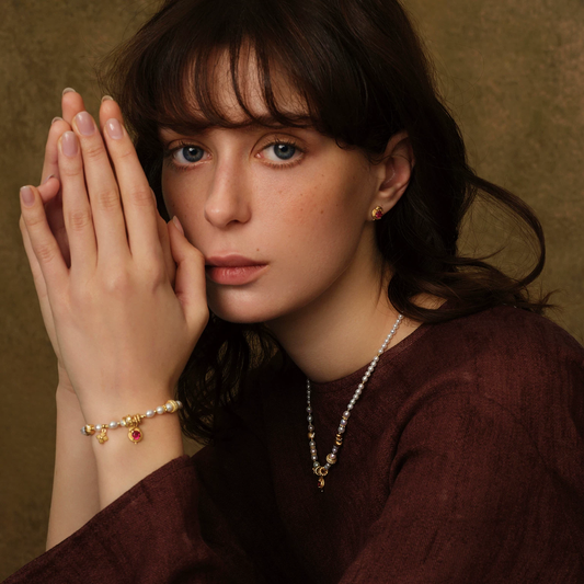 Pulsera con dije "Serpiente de la Fortuna" de Kemstone, hecha a mano • Oro vermeil de 18 quilates • Perlas naturales RSY-B609357
