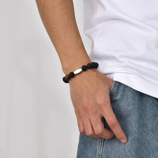 Kemstone Men’s Matte Onyx & Tiger Eye Bracelet – Adjustable Natural Stone Band BR-1680