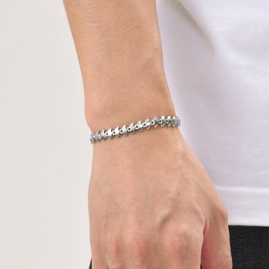Pulsera de cadena de acero inoxidable Kemstone hecha a mano para hombre: joyería moderna y duradera con eslabones pulidos y elegantes BR-1954