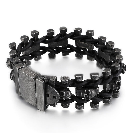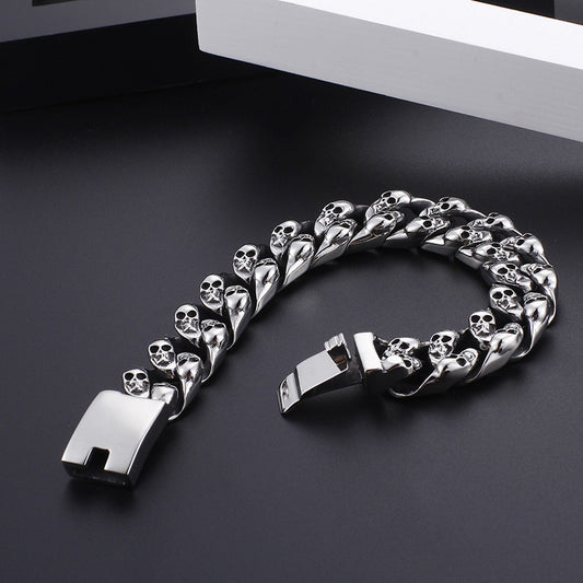 Pulsera Kemstone de acero y titanio para hombre: diseño de calavera audaz con cadena gruesa para un estilo urbano moderno KB80115-BD
