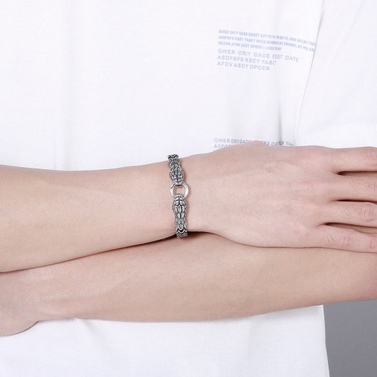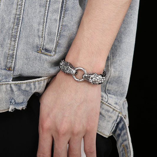 Pulsera Kemstone Twin Serpent de acero y titanio para hombre: diseño retro y vanguardista para guerreros modernos KB145401