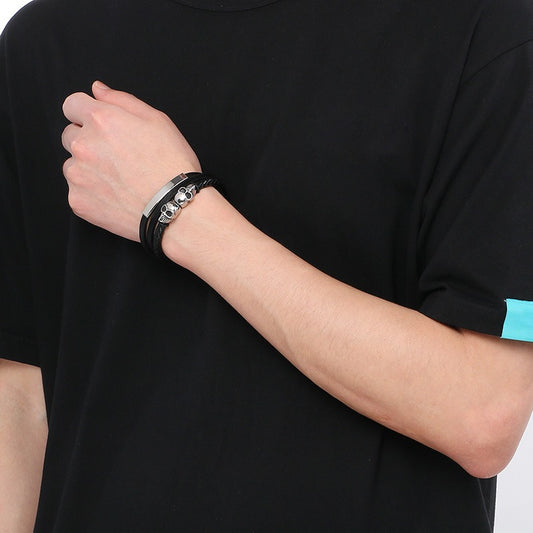 Kemstone Men’s Skull Leather Bracelet – Stainless Steel Punk Biker Jewelry KB180009