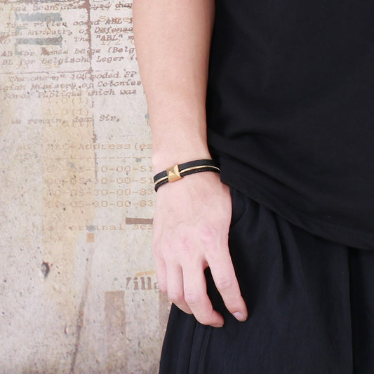 Kemstone Men’s Titanium Steel Leather Bracelet – Gold Snake Chain Wristband KB147381