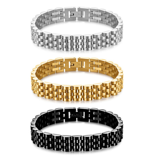 Kemstone Men’s Stainless Steel Watch Link Bracelet – 10mm Adjustable Chain Jewelry AD1633
