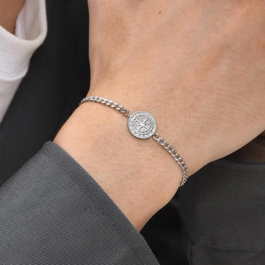 Kemstone Men’s Stainless Steel Compass Bracelet – Adjustable Minimalist Chain in Black, Gold & Silver BR2079