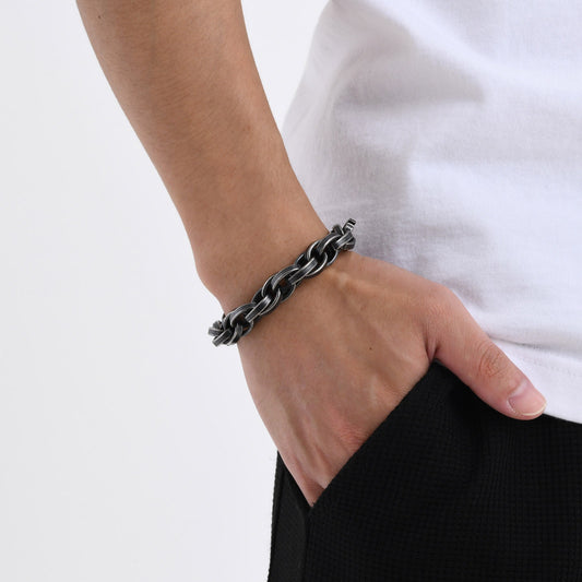 Men’s Vintage Punk Chain Bracelet – Heavy Stainless Steel Biker Link in Blackened or Antique Silver KB118451-BDJX