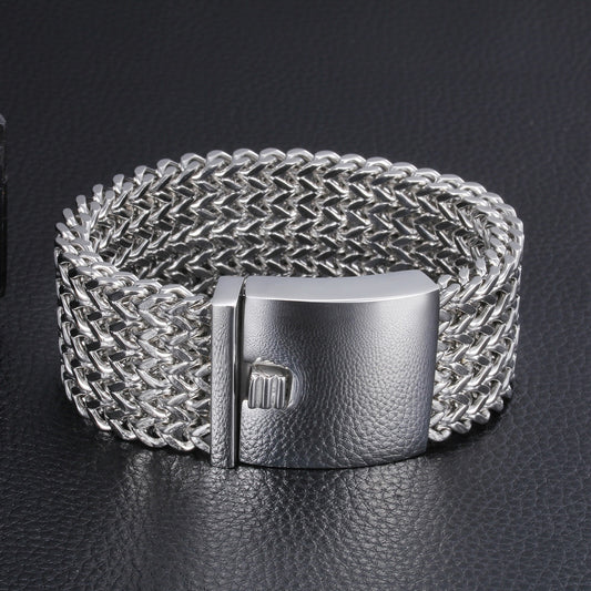 Kemstone Double Layer Chain Bracelet – 13mm Stainless Steel Punk Biker Jewelry for Men | KB91534-BD