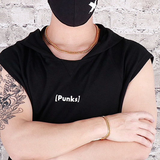 Kemstone Cuban Link Necklace & Bracelet Set – 8mm Stainless Steel Chain in Gold or Silver KS139040-Z