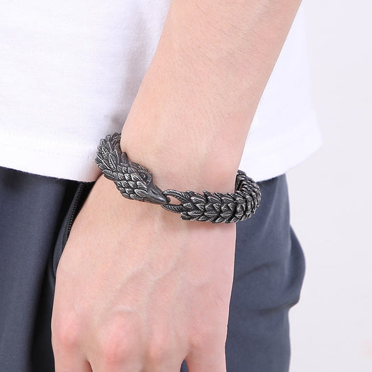 Pulsera de acero inoxidable con cabeza de águila envejecida – Estilo punk nórdico resistente KB166824