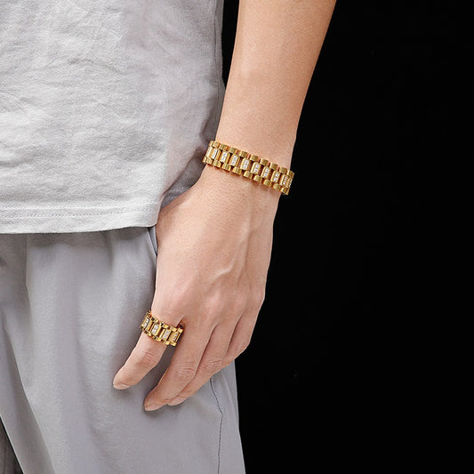 Conjunto de pulsera y anillo de acero inoxidable con incrustaciones de circonitas para hombre de Kemstone KB61656-K