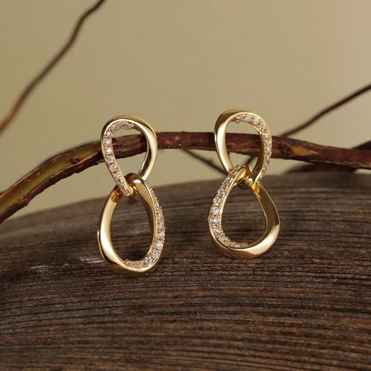 Kemstone Moissanite Infinity Stud Earrings – 925 Silver 18K Gold Plated Mobius Design EM-HXE204
