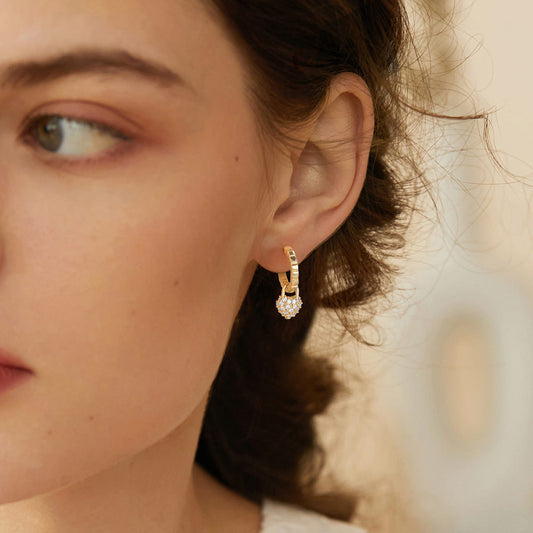 Kemstone Osmanthus Flower Earrings – 925 Silver 10K Gold Plated Vintage Floral Drop Hoop Jewelry for Women