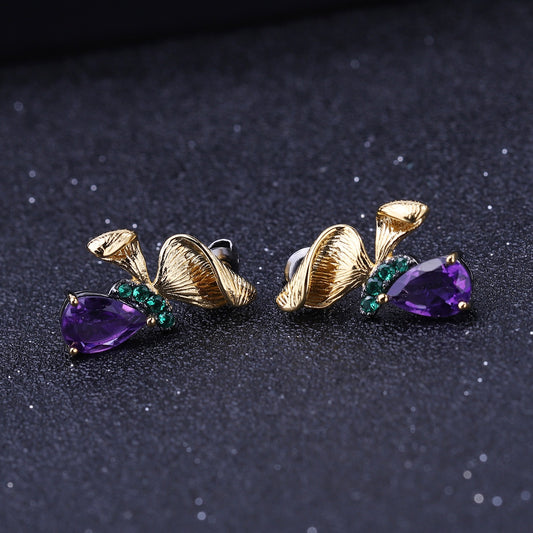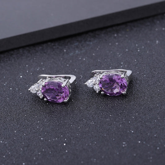 Pendientes de plata de ley S925 con piedras preciosas y topacio amatista, hechos a mano, con diseño original de Kemstone, para veladas elegantes.