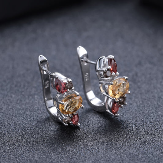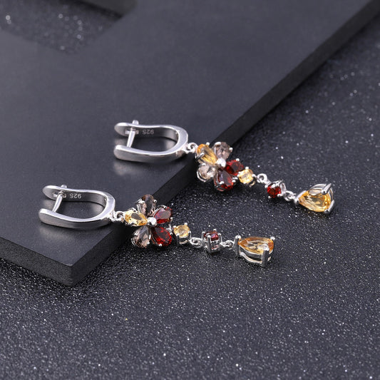 Pendientes colgantes de plata de ley con citrino y granate natural, diseño original, hechos a mano por Kemstone.