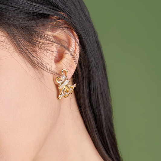 Pendientes BESHINE de conejito con diseño original, hechos a mano por Kemstone. Pendientes colgantes de plata de ley 925 bañados en oro con topacio azul cielo, cuarzo blanco y circonita cúbica. Un regalo de joyería alegre y brillante.