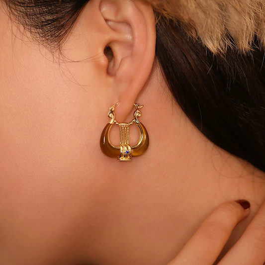 Pendientes de aro vintage Kemstone "Lyra Muse" de ojo de tigre y ágata roja, plata de ley 925 con baño de oro RSY-LLQ394