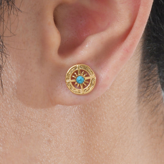 Kemstone Stainless Steel Turquoise Compass Stud Earrings – Vintage Symbolic Jewelry for Men, Gold/Silver ES-679
