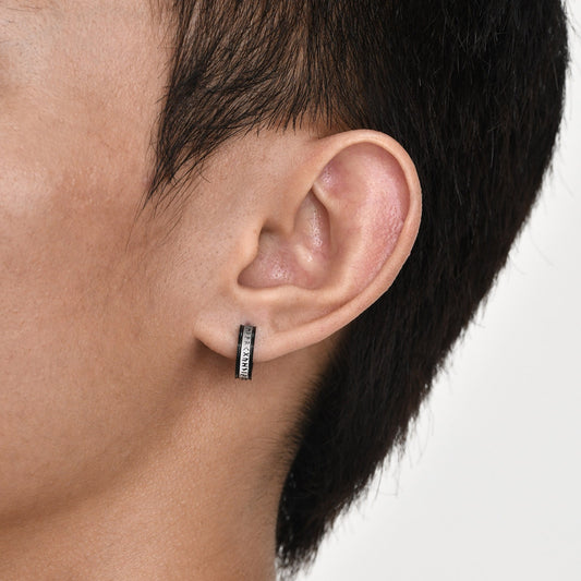 Kemstone Men’s Stainless Steel Chain Hoop Earring – Silver Black EH-302