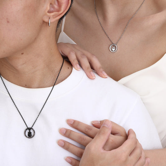 Collar con colgante de corona de acero y negro mate Kemstone con detalles de circonitas - Joya moderna para parejas para el día a día NC-1678
