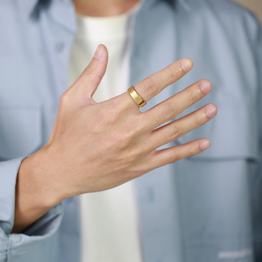 Anillo de acero inoxidable Kemstone con banda ancha - Joyería geométrica minimalista para parejas RC-448
