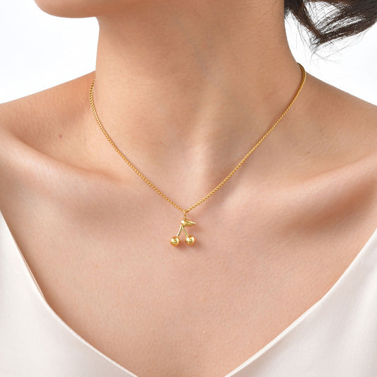 Collar minimalista de cadena cepillada de acero inoxidable Kemstone con colgante de flor de cerezo - Detalles dorados para mujer NC1968
