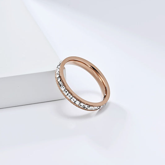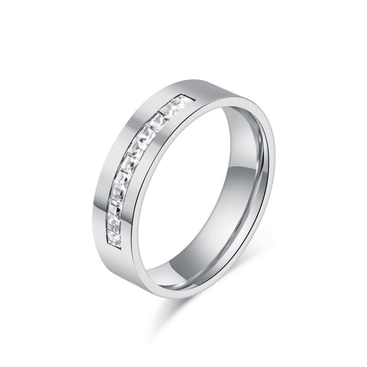 Elegante anillo cuadrado de acero y titanio con diamantes para mujer: un accesorio imprescindible para tus desplazamientos diarios K-R949