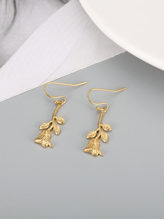 Pendientes Kemstone con diseño retro de rosa dorada - Pendientes minimalistas de acero de titanio con encanto bohemio TE0103