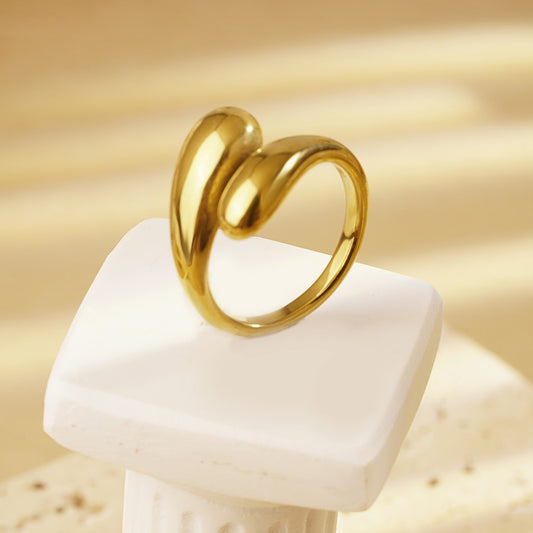 Anillo abierto ajustable con diseño geométrico de gota de agua de Kemstone - Joyería metálica minimalista para mujer LR1050