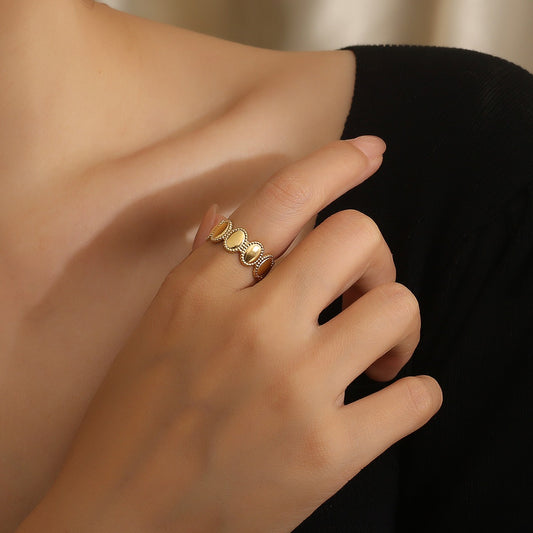 Elegante anillo de acero inoxidable para mujer inspirado en el bambú - Estilo minimalista INS K-R946